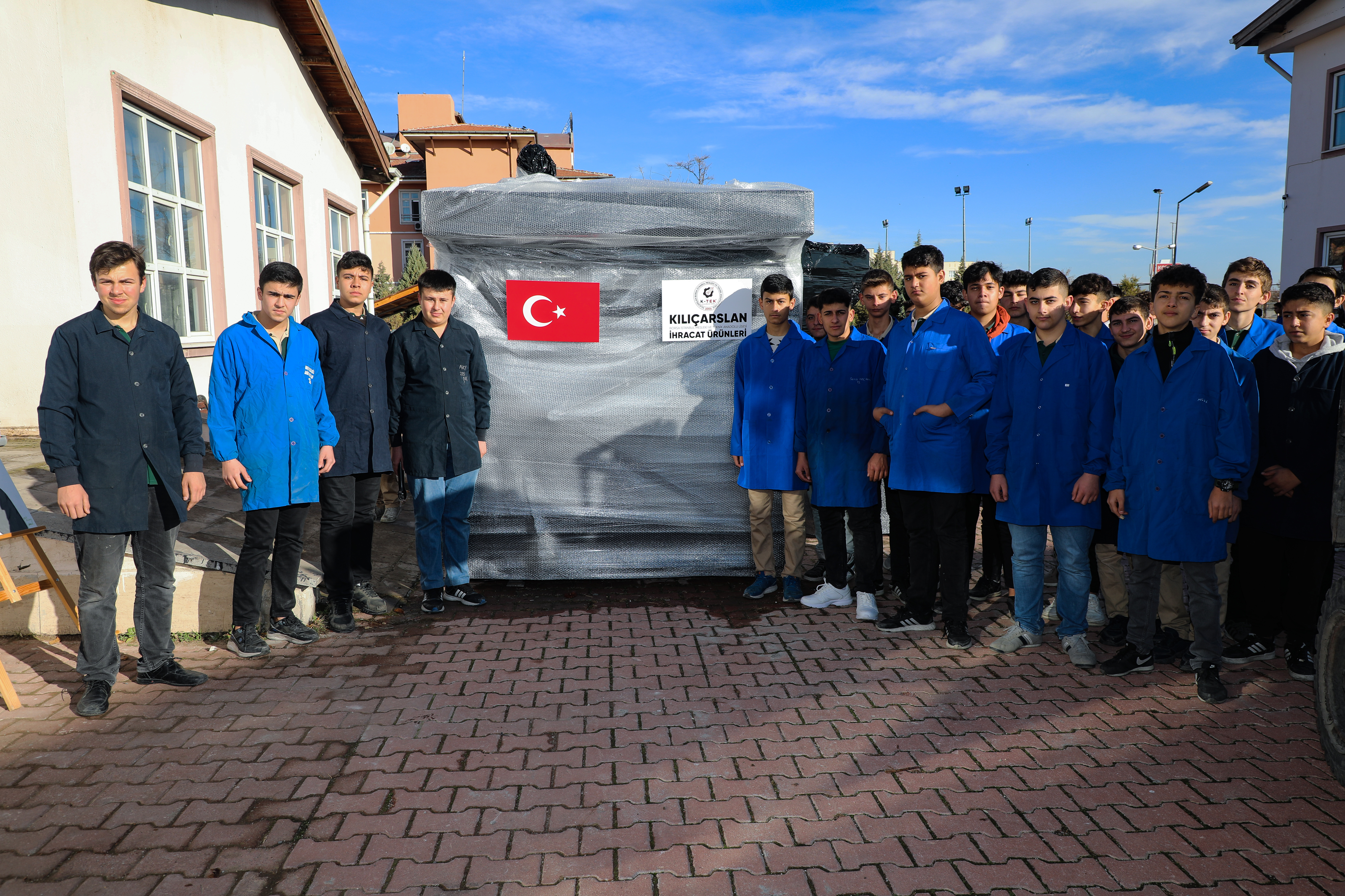Salgın devrinde maske makinesi ve maske üretimiyle başlayan sürecin devamında lazer kesim makinesi, akıllı konut sistemleri ve CNC Routher aygıtları üreterek, yaklaşık 81 vilayette satışını gerçekleştiren Muallim ve öğrenciler, ürettikleri fırın ekipmanlarını okulda düzenlenen merasimle Romanya’ya göndererek ihracata başladı.